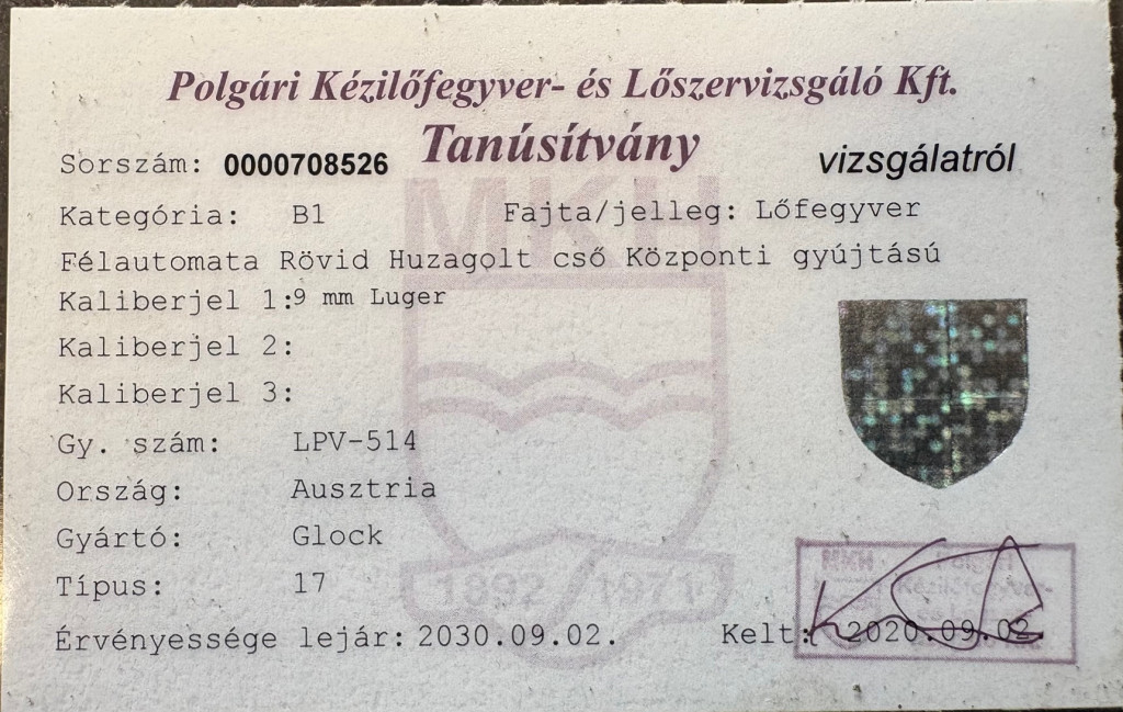 Glock 17 GEN 3 9mm luger LPV-514 "B1" használt + reddot talp